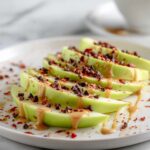 On a large platter or parchment-lined baking sheet, arrange the apple slices in a single layer with a slight overlap for a pretty presentation. Drizzle your almond butter mixture generously over the apples, making sure every slice gets a good coating.