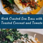 This herb-crusted sea bass with toasted coconut and tomato dressing is a flavorful, elegant dish that pairs the richness of sea bass with a fresh herb crust, nutty coconut topping, and a bright tomato vinaigrette. Perfect for a dinner party or a special weeknight meal, it offers a delicious balance of textures and tropical-inspired flavors.