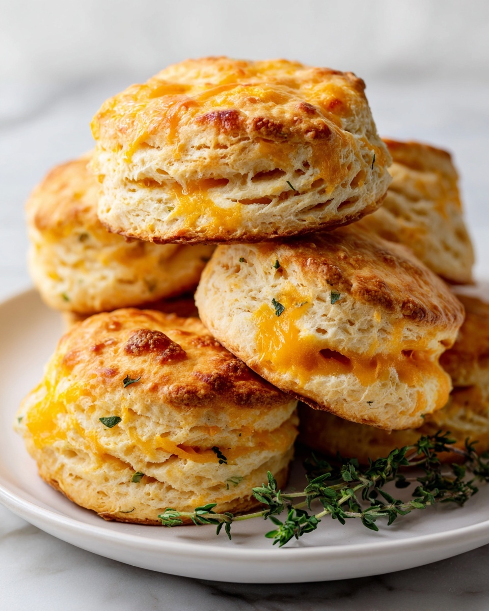 Topping your cheddar biscuits with a sprinkle of chopped fresh chives or parsley adds brightness and a pop of color. You can also serve them with a little swirl of honey butter or some herb-infused cream cheese for an elevated touch.