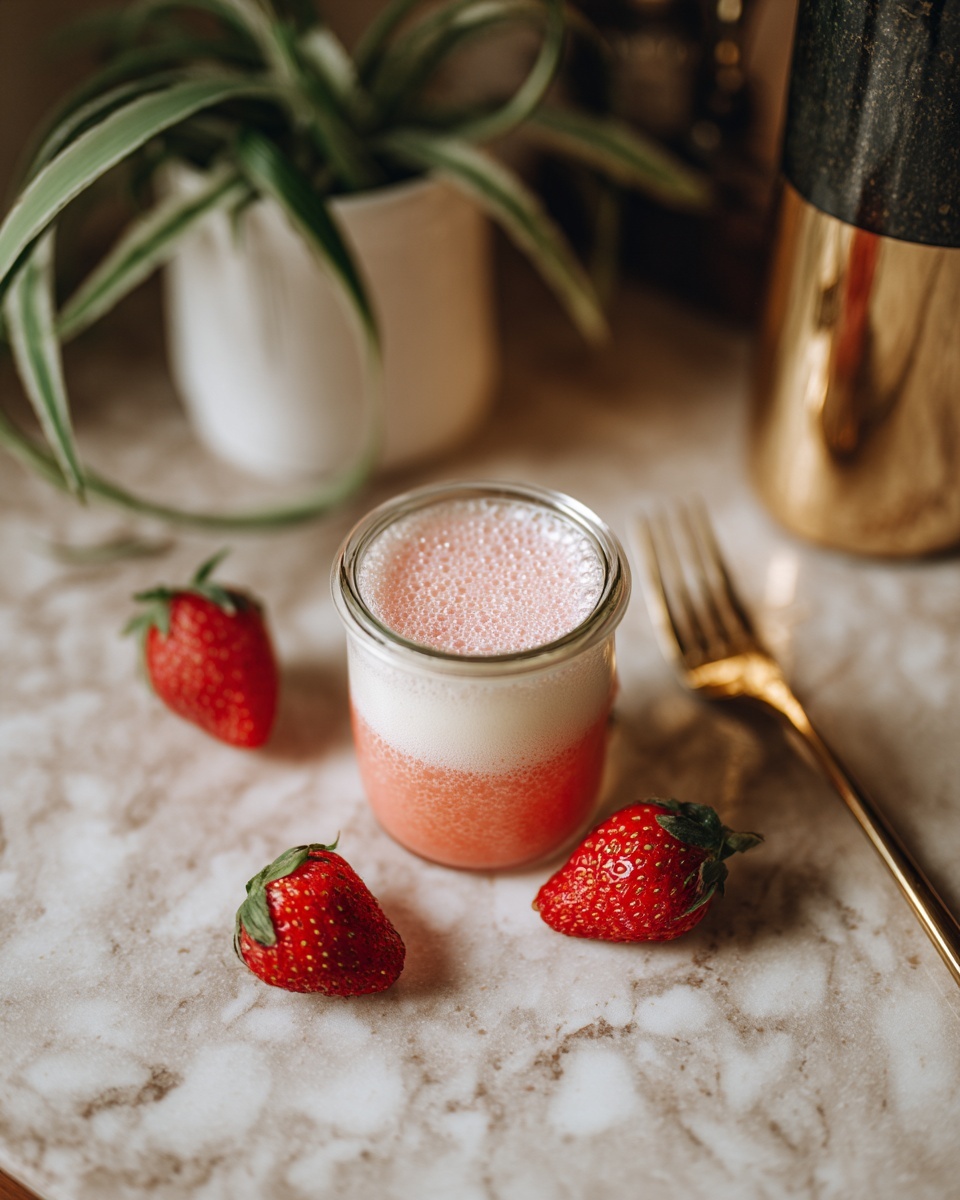 Transfer the creamer to an airtight container and refrigerate it for at least 4 hours. This chilling period allows all the flavors to meld, and the strawberries to infuse their essence into the creamy base, creating a harmonious taste that’s sweeter and more vibrant with time.