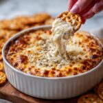This dip pairs beautifully with an assortment of dippers like crunchy crackers, toasted sliced baguette, or fresh vegetables such as carrot sticks, celery, or bell pepper strips. Each option offers a unique textural contrast to the silky hot onion dip.