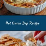 Hot Onion Dip is a creamy, cheesy appetizer featuring sweet caramelized onions blended with cream cheese, mayonnaise, Swiss and Parmesan cheeses. Baked until golden and bubbly, it’s perfect for serving warm alongside crackers, sliced baguette, or fresh vegetables at parties and gatherings.
