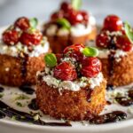 Crispy Italian Basil Chicken Cutlets topped with a vibrant tomato and burrata mixture. This recipe features tender chicken breasts breaded and fried to golden perfection, served with a fresh, flavorful topping of blistered cherry tomatoes, fragrant basil, and creamy burrata cheese, all finished with a tangy balsamic glaze.