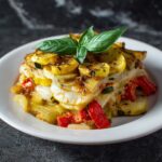In a medium mixing bowl, whisk together the eggs, milk, all-purpose flour, grated Parmesan cheese, dried oregano, salt, and pepper. Aim for a batter that’s smooth and somewhat thick but still pourable. If it feels too dense, don’t hesitate to add a splash more milk. The balance here is critical because the batter will coat the vegetables to form that lovely, fluffy but structured crust the scarpaccia is known for.