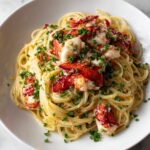 A luxurious Lobster Pasta with Cream Sauce featuring tender lobster meat tossed in a rich, creamy Parmesan sauce with a hint of lemon, served over perfectly cooked fettuccine or linguine. This Italian-American main course is ideal for special occasions or an indulgent seafood dinner.