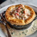This Lobster Pot Pie recipe combines succulent fresh lobster meat with a creamy vegetable filling, all encased in a golden, flaky puff pastry crust. Perfect as an elegant yet comforting meal, it brings together tender lobster, aromatic herbs, and a rich sauce baked to perfection in under an hour.