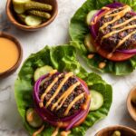 Lay out the Boston lettuce leaves on your serving plates—they’ll act as a crisp, fresh base. Layer pickles and tomato slices first, then top with the cheesy beef patties, red onion slices, and generously drizzle the special sauce over the entire creation. The combination of cool veggies, rich meat, and tangy sauce wrapped in tender lettuce is pure magic.