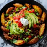 Toppings turn this dish from delicious to unforgettable. Crisp green onions add a mild sharpness while fresh coriander provides herbaceous brightness. Creamy sour cream cools down the spices and balances richness, and diced avocado offers buttery texture. Shredded cheese melts into the warm meat and wedges, pulling everything together with cheesy goodness. Don’t skip tomato salsa or sweet chili sauce for that vibrant, zesty finish.