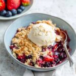 Enhance your Mixed Berry Crisp Recipe by garnishing it with a scoop of creamy vanilla ice cream or a dollop of freshly whipped cream. These toppings melt into the warm crisp, adding luscious smoothness that balances the fruit’s natural tanginess and the crunchy oat topping.