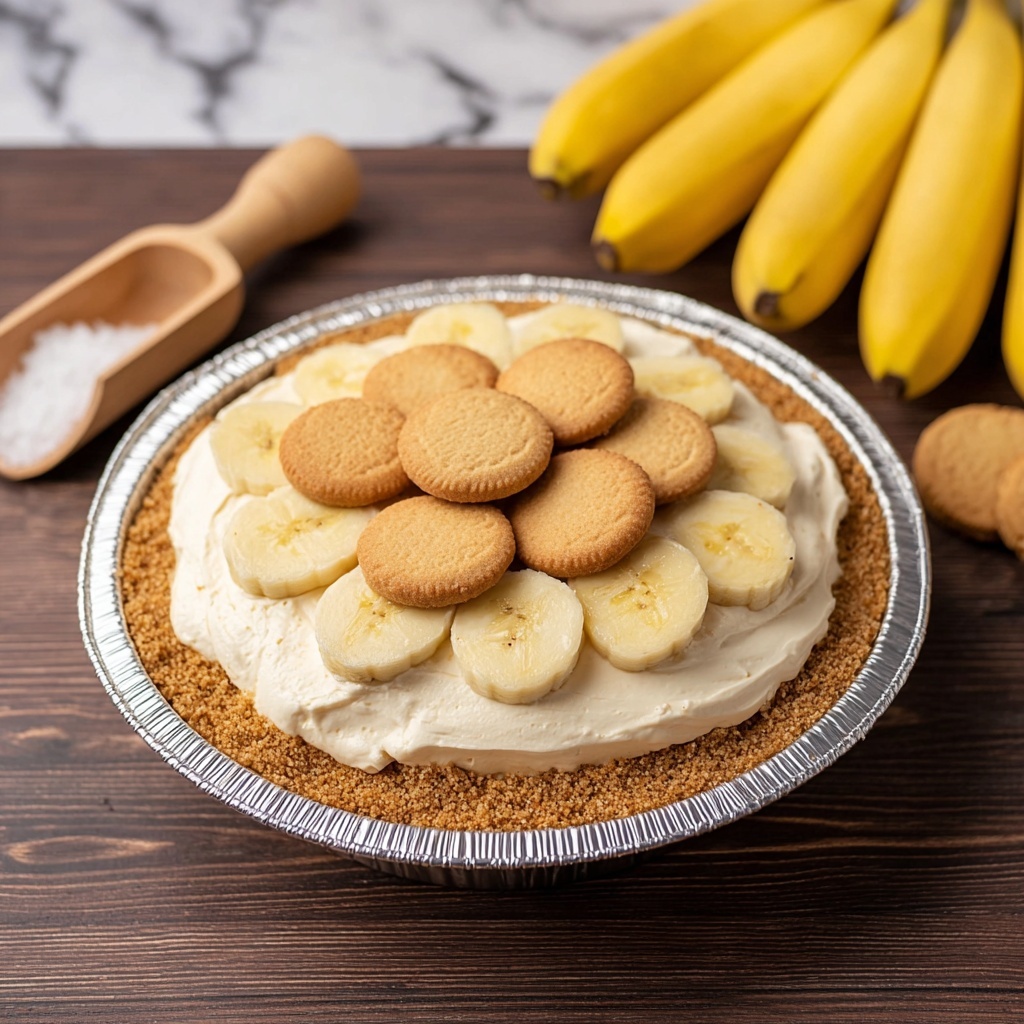 - Add banana and wafer layer: Place a layer of sliced bananas and vanilla wafers evenly on top of the filling.