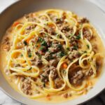 This One-Pot Creamy Beef and Garlic Butter Pasta is a comforting and easy-to-make dish featuring tender ground beef and garlic-infused sauce simmered with pasta in a rich, creamy Parmesan broth. Ready in just 20 minutes, it’s perfect for a quick weeknight dinner that delivers big on flavor with minimal cleanup.