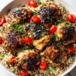 This One-Pot Italian Tomato Chicken and Rice recipe is a hearty, flavorful dish combining tender chicken pieces with aromatic herbs, sun-dried tomatoes, olives, and flavorful rice cooked together in a single skillet. A perfect balanced meal that’s easy to prepare, bakes in the oven, and finishes with a crispy golden top under the grill. It’s ideal for a comforting family dinner.