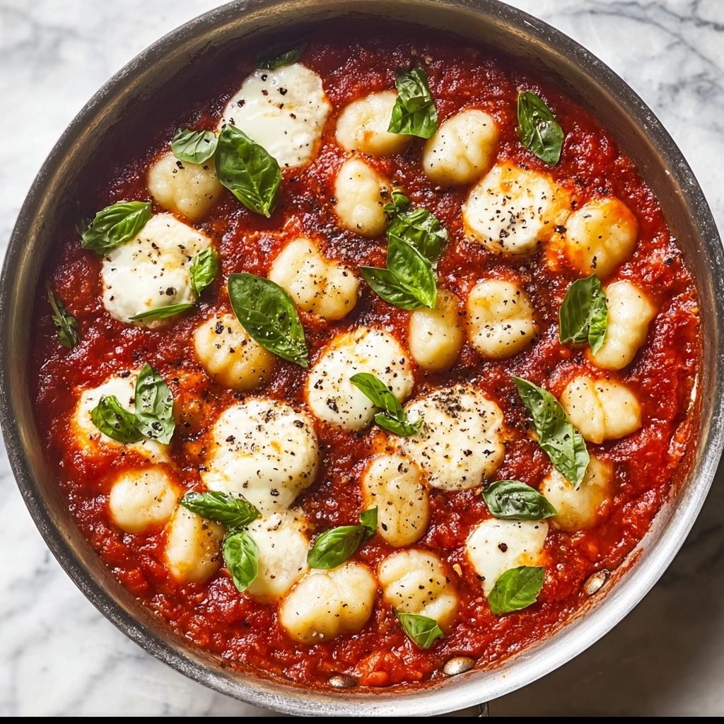 For a cozy dinner party, serve the gnocchi straight from the skillet at the table for a rustic, inviting vibe. You can also portion it into individual oven-safe ramekins topped with cheese and broiled separately to impress guests with mini baked gnocchi gratins. A final sprinkle of chopped herbs or edible flowers can add a sophisticated flair.