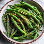 For a festive touch, serve the roasted green beans in a beautiful shallow dish, garnished with fresh herbs like parsley or thyme. You can even toss them with caramelized onions or crispy shallots on top for an indulgent twist. If you want to impress guests, present them in little bundles tied with chives or scallions for a charming look.