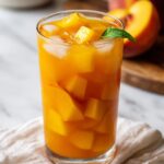 - Serve: Serve the peach sweet tea over ice, garnished with fresh peach slices and mint if desired.