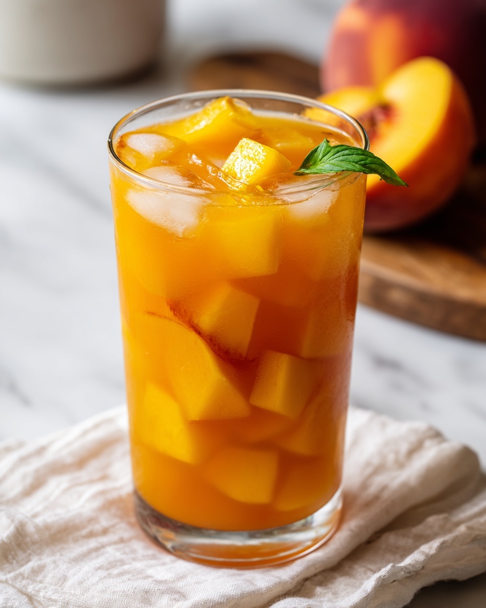 Presentation makes all the difference, especially for a drink this charming. Garnishing your Peach Sweet Tea Recipe with fresh peach slices instantly elevates the look and adds an extra bite of peachy goodness. Sprigs of mint add a refreshing aroma and a lovely green contrast that screams summer.