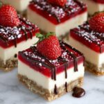 For an eye-catching display, try layering cheesecake bars in a clear glass dish with alternating layers of berries and whipped cream for a trifle-style treat. You can also serve individual bars on a rustic wooden board adorned with mint sprigs and edible flowers for an inviting presentation that’s perfect for gatherings or celebratory events.