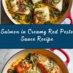 This creamy and flavorful Salmon in Red Pesto Sauce combines tender seared salmon fillets with a rich, savory sauce made from crushed tomatoes, red pesto, cream cheese, and fresh spinach. Perfect for a quick and impressive 30-minute meal that feels indulgent yet nutritious.