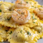 Delicious Shrimp Ravioli in a rich and creamy garlic sauce, perfect for a comforting and elegant meal. Tender shrimp sautéed to perfection are combined with delicate ravioli and coated in a savory sauce made with garlic, white wine, Parmesan cheese, and heavy cream. Ready in just 35 minutes, this recipe is a great option for a quick yet impressive dinner.