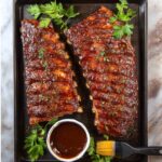 A sprinkle of freshly chopped parsley or green onions adds a pop of color and freshness to the plate. For an extra zing, serve with a wedge of lemon or lime to give a citrusy brightness that cuts through the richness of the ribs.