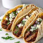 Warm your tortillas until they are soft and pliable. Fill each one generously with the shredded or sliced brisket. Top with fresh cilantro, Monterey Jack cheese, diced red onion, and an extra drizzle of BBQ sauce for a loaded bite bursting with layers of flavor. Your Slow Cooker BBQ Beef Brisket Tacos Recipe is now ready to enjoy.