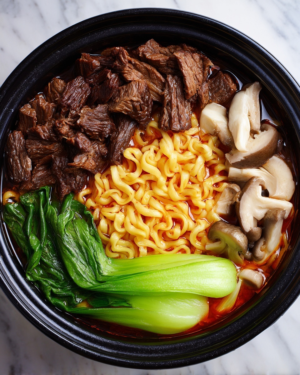 - Cook the Noodles: Add the dried ramen noodles to the slow cooker and cook for another 3-5 minutes or until the noodles are tender but still have some bite. Stir gently to prevent sticking.