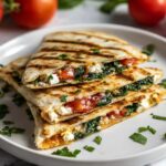 Delicious and easy-to-make Spinach and Feta Quesadillas, loaded with fresh spinach, crumbly feta cheese, and optional flavorful additions such as sun-dried tomatoes, black olives, and grilled chicken. Perfect for a quick lunch or light dinner, these quesadillas are cooked to golden perfection in a skillet for a crispy, satisfying bite.