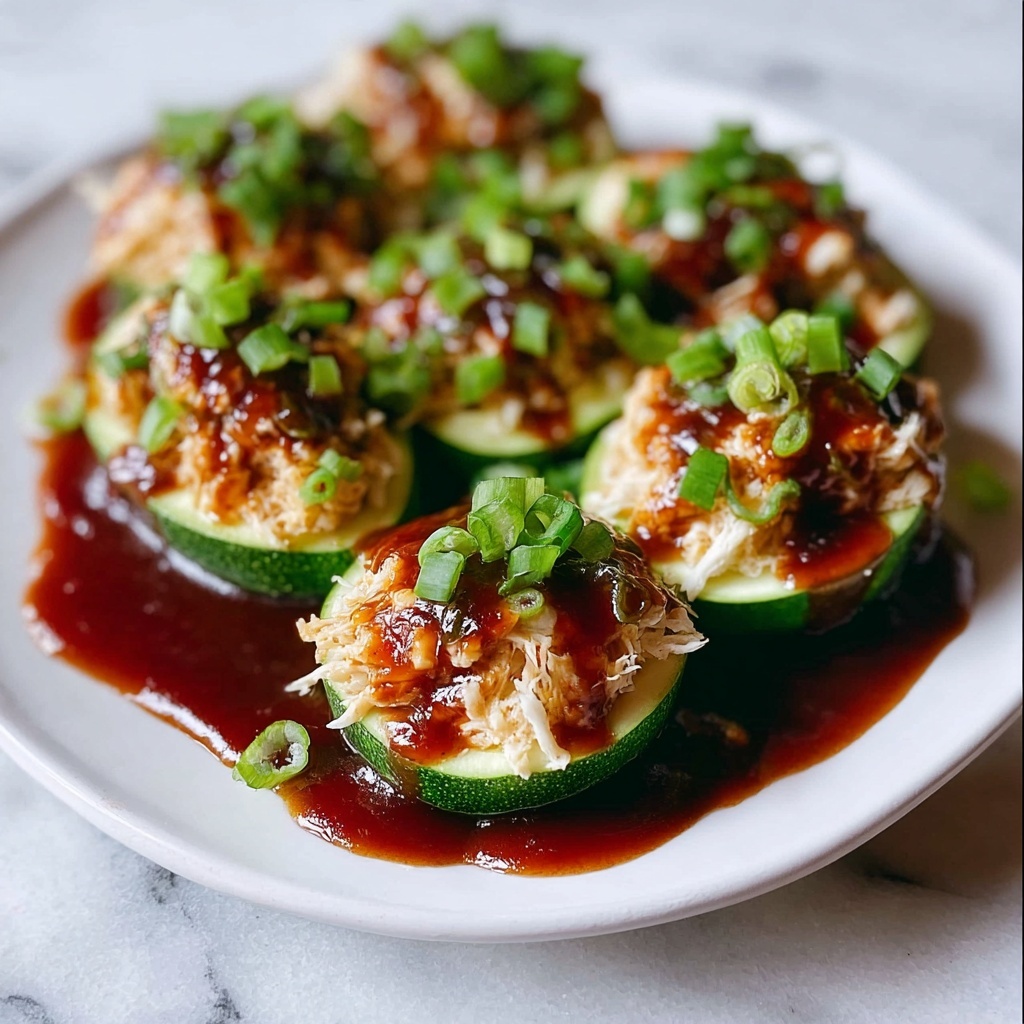 Delicious and easy-to-make Sticky BBQ Chicken Zucchini Boats combining tender zucchini halves filled with savory BBQ chicken and melted cheese for a healthy, flavorful meal perfect for weeknight dinners.
