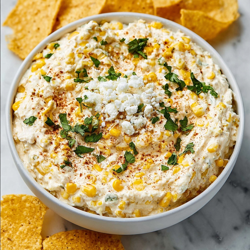 For a fun twist, serve the Street Corn Dip Recipe in individual mini mason jars or colorful ramekins for easy grab-and-go portions at gatherings. You can also dish it into hollowed-out mini bell peppers for an edible bowl experience. Pairing it with a festive garnish bar that includes lime wedges, jalapeño slices, and extra cheese lets everyone customize their bites and adds interactive fun to the table!