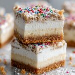 These Sugar Cookie Cheesecake Bars combine the buttery, sweet base of a classic sugar cookie crust with a rich and creamy cheesecake topping. Baked to perfection with a slightly golden edge and a smooth, velvety center, these bars are an irresistible dessert that’s perfect for any occasion. The optional sprinkle of sugar on top adds a delightful crunch and extra sweetness.