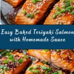 This Teriyaki Salmon recipe features tender, flaky salmon fillets marinated in a flavorful blend of teriyaki, hoisin, and soy sauces, then baked to perfection and topped with a glossy, thickened teriyaki glaze. Garnished with sesame seeds and green onions, it offers a delightful balance of sweet and savory Asian-inspired flavors, perfect for a quick and elegant dinner.