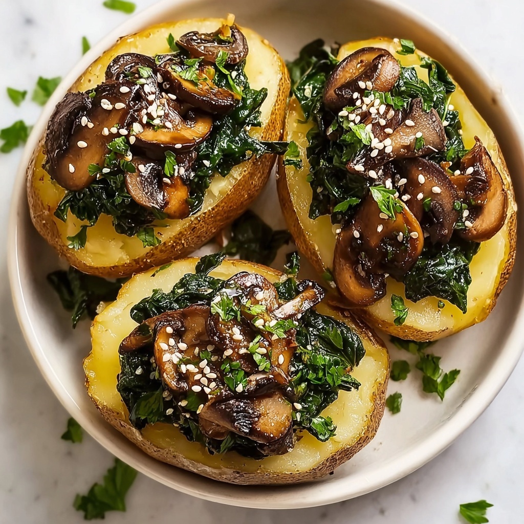 For an unforgettable presentation, try cutting the stuffed potatoes into halves or rounds for a tapas-style appetizer. Alternatively, place the fully stuffed potatoes on a rustic wooden board adorned with fresh herbs or edible flowers for a charming dinner party centerpiece. Using colorful plates can also really make the vibrant greens and earthy mushrooms pop.