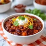 Fresh cilantro is a classic choice that adds color, freshness, and a hint of herbal brightness. You can also top your chili with creamy slices of avocado or a dollop of sour cream or Greek yogurt for added richness and a cooling contrast.