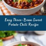 This hearty and flavorful Three-Bean Sweet Potato Chili is a vibrant, nutritious vegetarian meal perfect for cozy dinners. Packed with black beans, kidney beans, pinto beans, tender sweet potatoes, and warming spices, it delivers a satisfying texture and depth of flavor. Simmered to perfection and finished with fresh lime juice and cilantro, this chili is delicious served on its own or paired with rice, tortilla chips, or avocado.