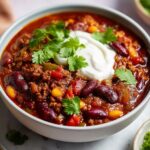 This hearty Vegetarian Chili is a flavorful, comforting dish packed with black beans, fire-roasted tomatoes, and a blend of spices. Perfect for a nutritious weeknight dinner, it’s easy to prepare on the stovetop and provides a satisfying meal that serves six.