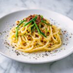 This Vegetarian Carbonara recipe offers a delicious twist on the classic Italian dish by replacing pancetta with crispy fried zucchini. Combining perfectly cooked pasta with a creamy sauce made from eggs and pecorino romano cheese, this dish is rich, flavorful, and easy to make in just 30 minutes. Garlic and olive oil add depth, while the zucchini brings a satisfying texture and freshness, making this a perfect meat-free option for pasta lovers.